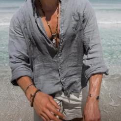 Men’s Cotton Linen Shirt Long Sleeve Loose Tops