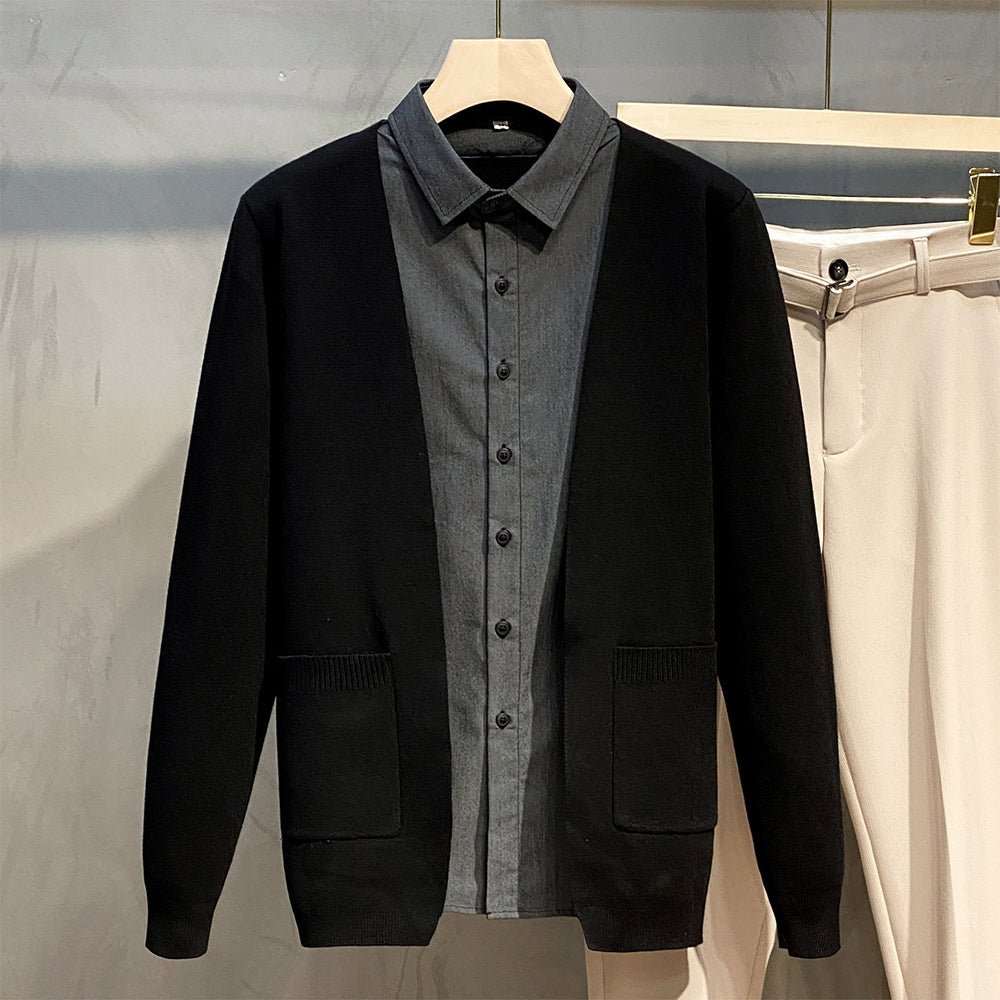 - 1* Men’s Casual Trend Loose V-Neck Sweater Lapel Polo Shirt