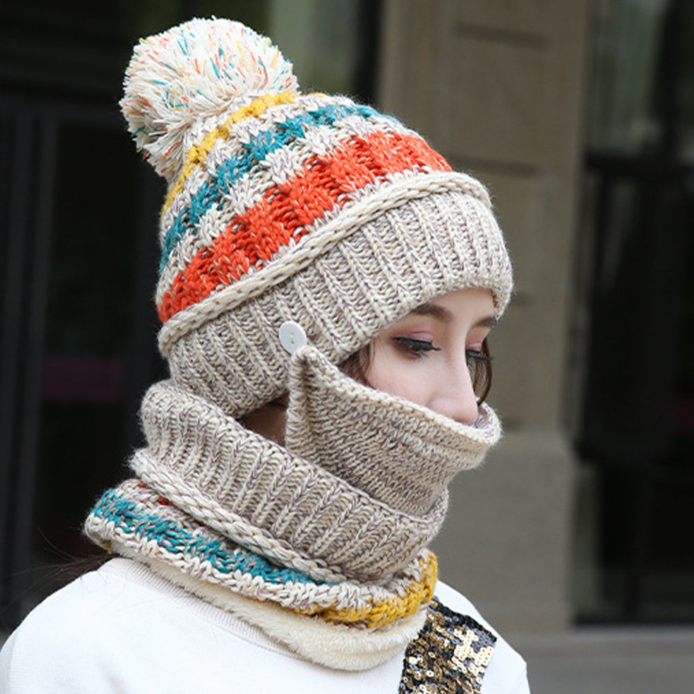 - 1*Plush Colorblock Knitted Hat Scarf Mask Three Piece Set