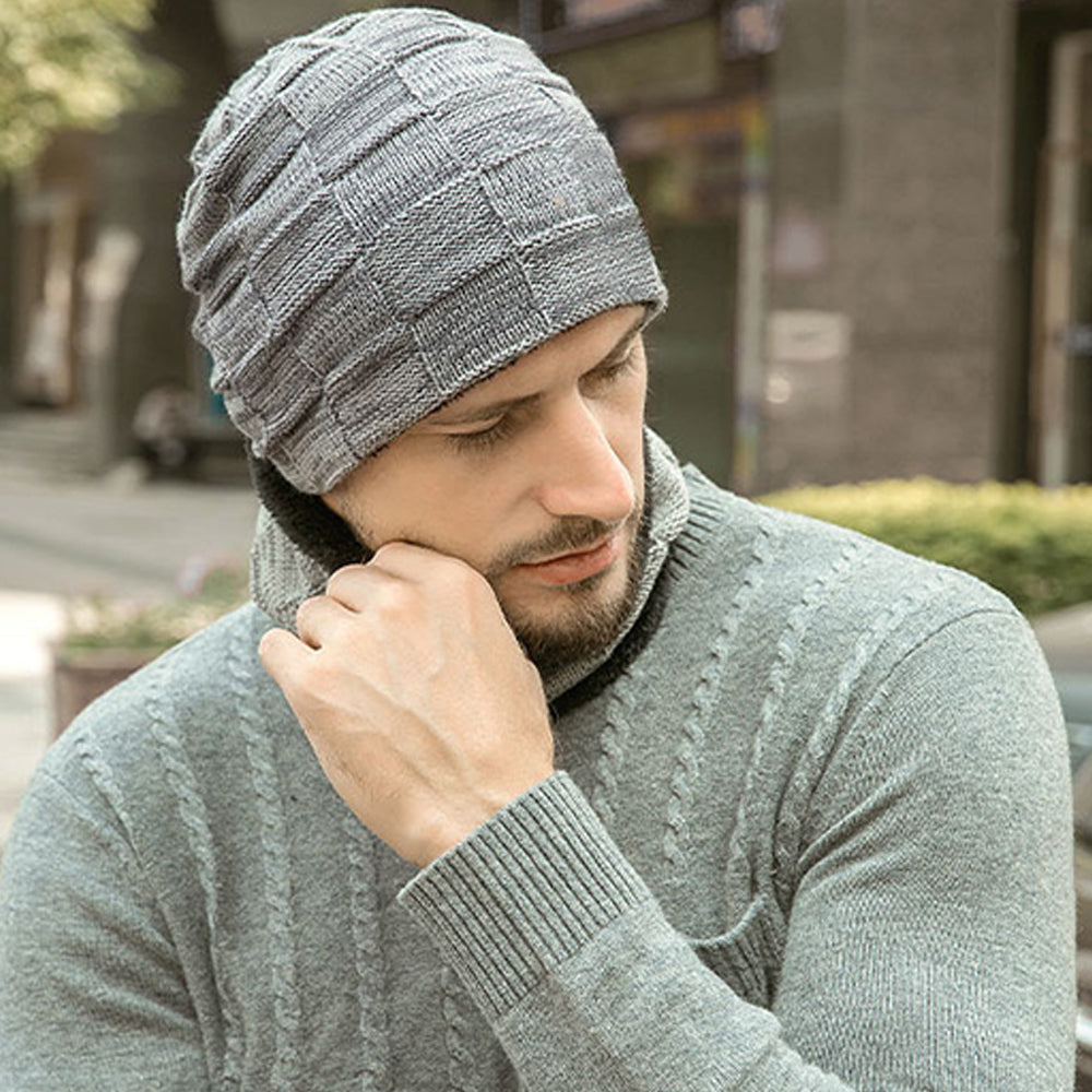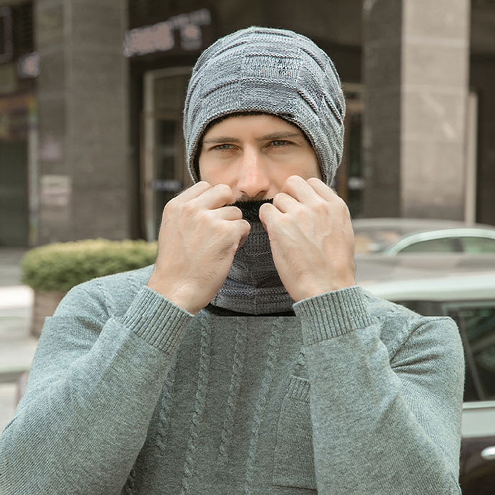 - 1*Men’s Winter Warm Knit Beanie Hat Scarf Set