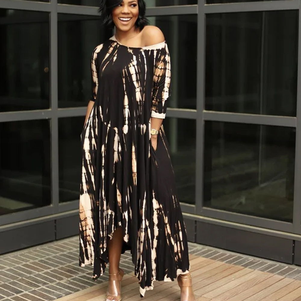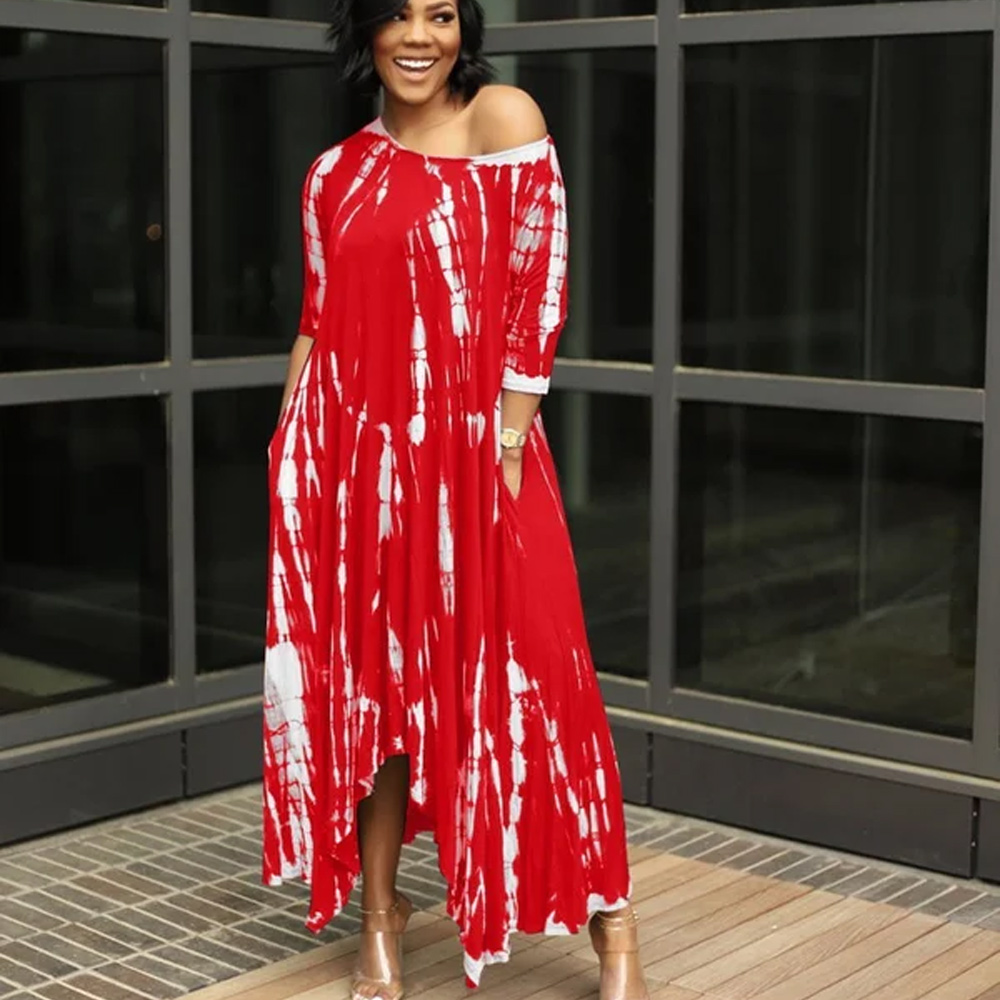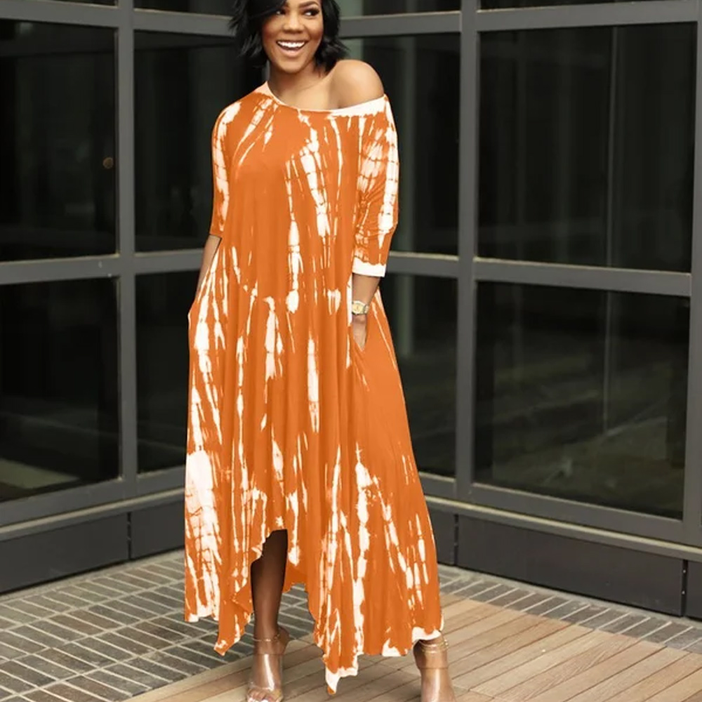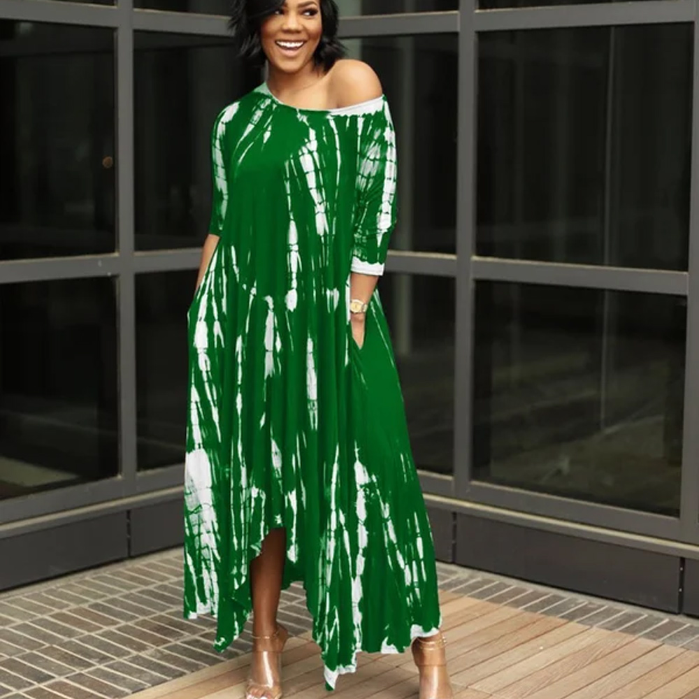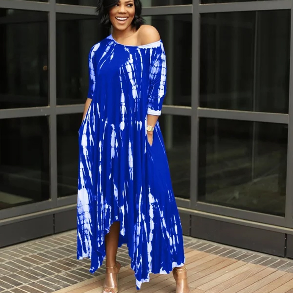 - Plus size tie dye style. casual long dress. elegant. asymmetrical and irregular. The T-shirt dress can be wear of one off shouder.