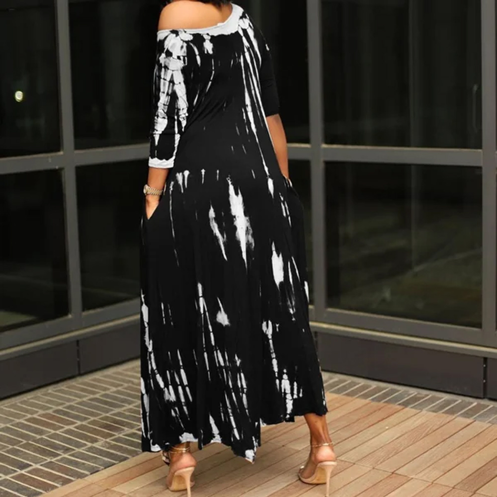 - 1*Off the shoulder Sleeve Loose Graffiti Tie-Dye Pocket Long Dress with slit