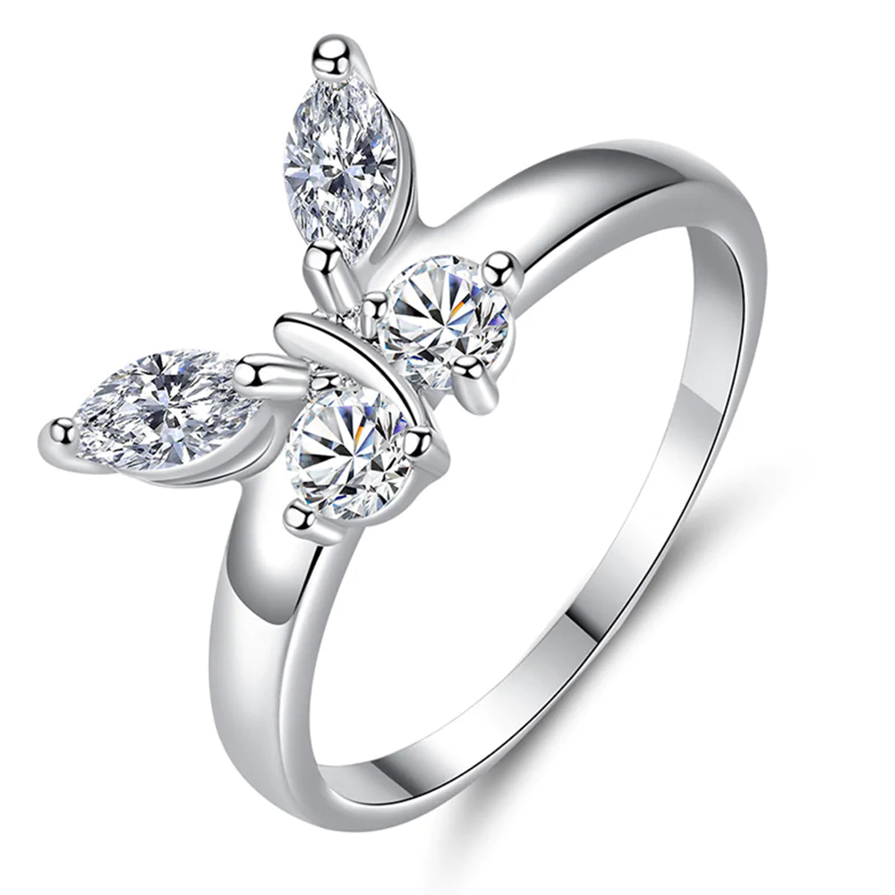 - Material: This silver butterfly ring was made of Brass.silver plated. inlaid with 3A cubic zirconia. Lead-Free. Nickel-Free. It is safety for allergy sufferer. would not turn your skin green.